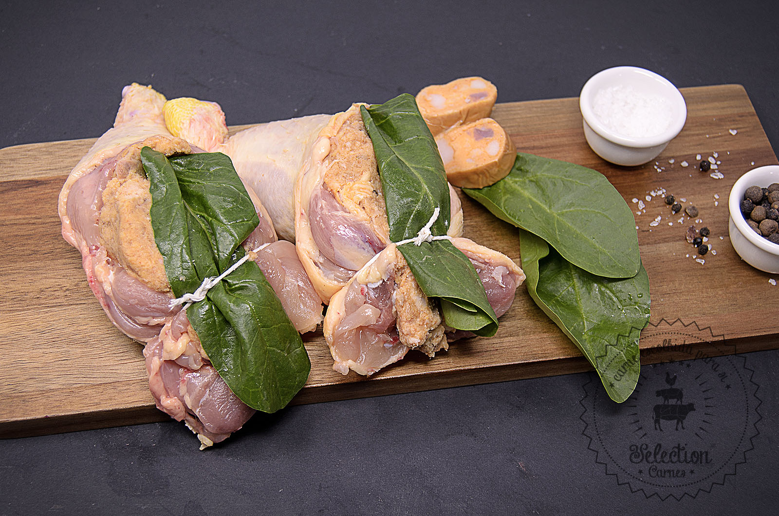 Perna de frango, alheira e espinafre.